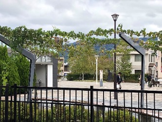 さて今回の学会が開催された塩尻市はワインが有名な場所でもあります。塩尻駅のホームからは写真のようにブドウの木が見えます。また名古屋から特急しなので塩尻に向かうと塩尻の次は松本で、天気の良い日は松本駅の出口(アルプス口)から北アルプスの絶景が楽しめるようでした(学会中は残念ながら晴れませんでした)。